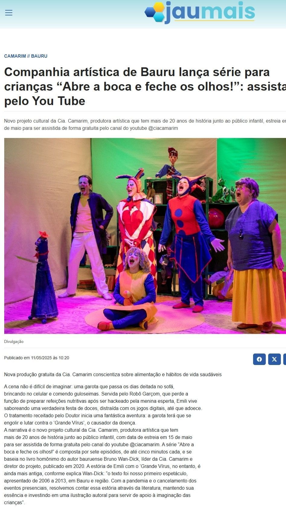 Apoio: Prefeitura Municipal de Bauru e Secretaria Municipal de Cultura