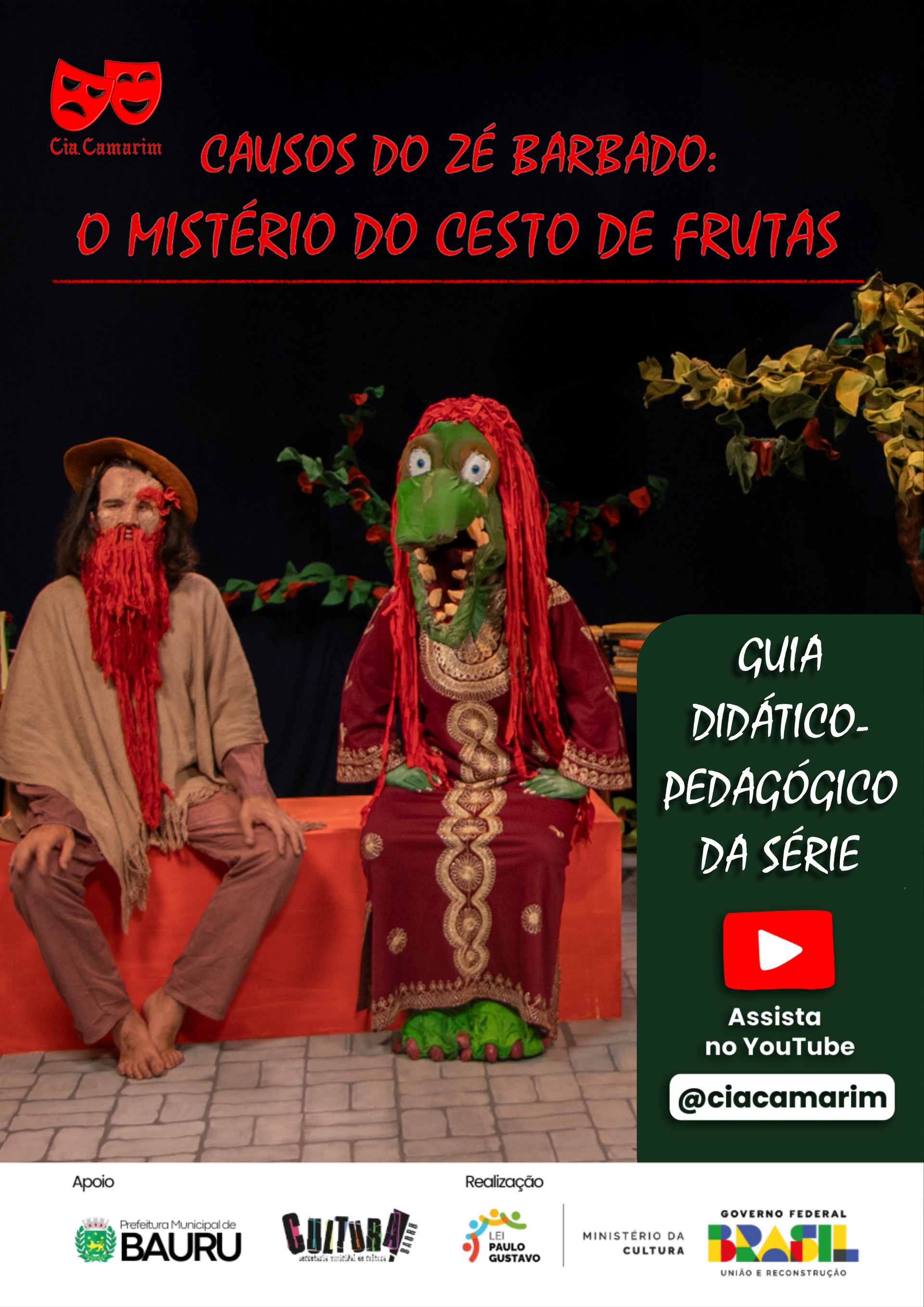 Já estão disponíveis os guias didático-pedagógicos das nossas séries “Abre a boca e feche os olhos!” e “Causos do Zé Barbado, o mistério do cesto de frutas”. O material é de distribuição virtual e gratuita e foi elaborado com a intenção de auxiliar o corpo docente no desenvolvimento de atividades inspiradas em nossas séries.